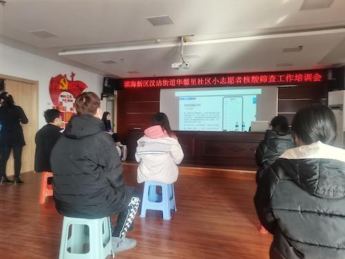 实践队员在为全社会高效抗疫动容的同时,也切身感受到抗疫工作的艰辛。为切实做好准备工作,顺利开展三筛工作,滨海新区于1月14日即进行了社区小志愿者核酸筛查培训会,会议强调了三筛过程中相比前两轮大筛中的不同之处,也为志愿者们全力迎战三筛鼓舞了斗志。15日早晨六点,实践队员就已到岗,化身“温柔大白”,协助录入信息、按楼叫号、安抚居民等多岗工作,至次日上午七点才结束全部工作。