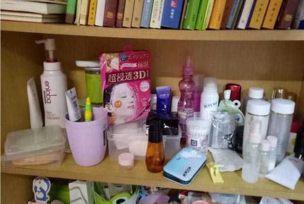 女生宿舍桌子上都是瓶瓶罐罐的化妆品