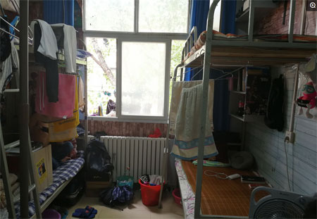 这是男生宿舍的照片,衣服毛巾随便搭在宿舍内。