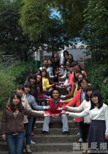 湖南师范大学外国语学院2012级英语教育二班一共45人,唯一的那个男生叫田鑫。这名扎在“花丛”中的男生目前还没有女朋友,他说自己“一碗水端平了”。