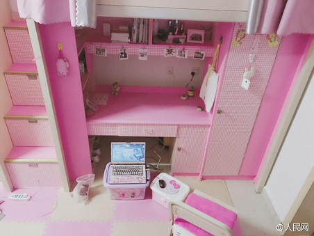 大学生打造粉嫩梦幻寝室被赞萌萌哒