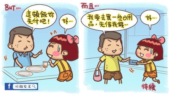 男友常常耍赖要女友先付钱,之后当然也装傻没有还。甚至自己要用的生活用品,也厚着脸皮要女友帮忙买 (好会算),吃吃喝喝有人买单,简直爽得要命呀!除了男友帮忙花钱之外,妹子后来还遇到更傻眼滴事件。敬请期待下集。水瓶女王 VS老公仔