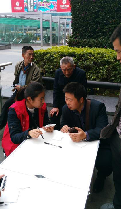 大学生深圳火车站无偿帮农民工网上抢票