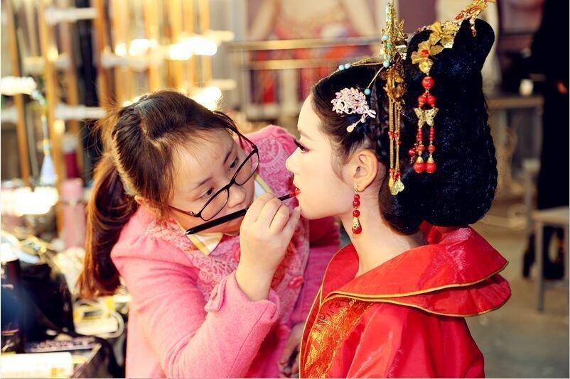 红色唐装,金色配饰,精致大气的唐风妆容,这一个高校版的“武媚娘”,堪称为最“雍容华贵”的期末考答卷了。