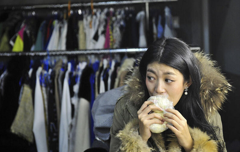 “饿肚子、眼睛发炎、腿脚酸痛是常有的事。强度最高时一天赶三场,换上百套衣服,眼花缭乱地拍下来已经晕乎了。”小亚说。