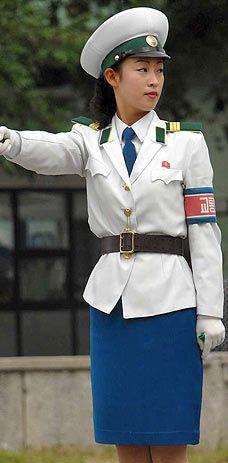 朝鲜女交警在朝鲜现役女军人训练时除外。飒爽英姿五尺枪,穿上裤子不露裆,只有这样,才能有效防止女兵们春光乍泄。