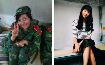 图为一位女大学生大一时和毕业时的对比照,看起来变得成熟和知性了