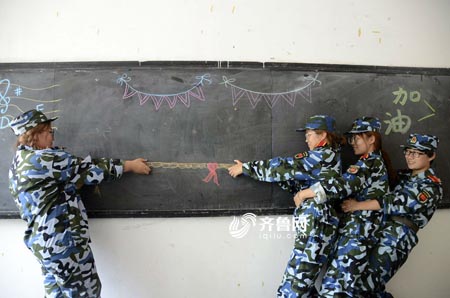 聊城大学生拍创意照片, “玩转”军训