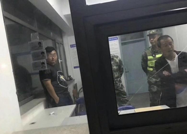据了解,大外女生在校内屡次遭社会车辆骚扰,此前学校男生就自愿组织了骑车队巡逻。图为涉事男子(左)被警员带返调查。