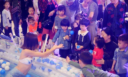 济南一女大学生扮演美人鱼 水中展示妙曼身材