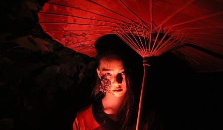 “专业户”们化好妆后就开始出动了,按照自己的角色,有的在园区闲逛,与游客互动,不时出来“吓”游客;有的坐在榕树底下,给游客讲中国传说中的鬼故事;有的坐在“奈何桥”上,扮演“孟婆”,手里还拿着汤;有的躲在暗处,不时突然出现在游客面前;有的躺在面包盒里,扮“人体面包”;有的去鬼屋,在里面做固定的“鬼怪”;有的则在园区内参加万圣夜演出。