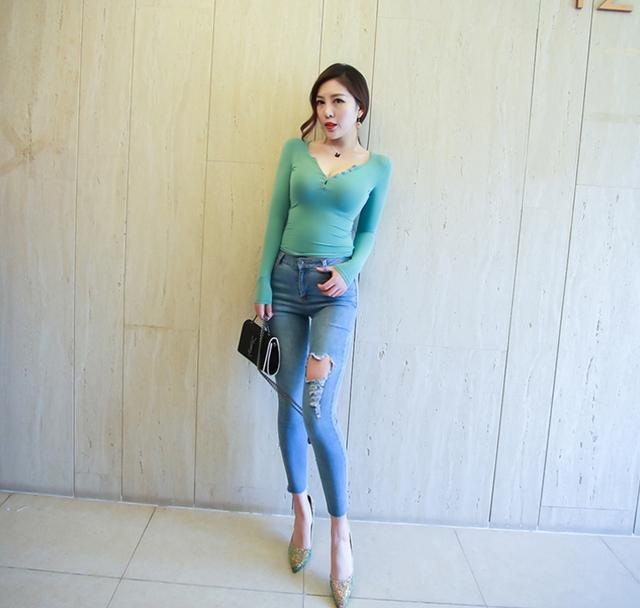 此时再带上一个黑色皮包外出逛街,那效果非常的不一般,整体搭配不仅能够让人感觉舒适,关键是能够将你自身的优势完全的展现出来,想不引人关注都不行,同时,脚上的高跟鞋选色也选择跟上衣T恤一样的颜色,相互呼应,效果非常的不一般。