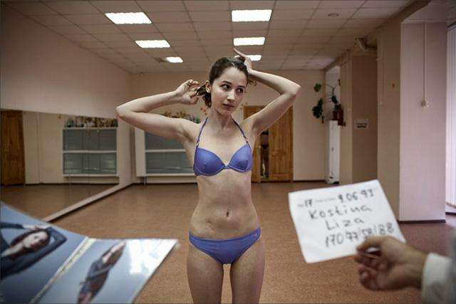 台上光鲜靓丽的女孩,拍照间隙在休息的疲惫的模特儿