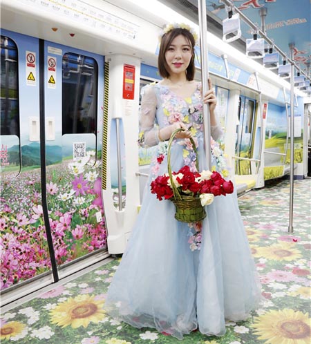 整个车厢被装饰成“花海”,感觉十分浪漫。