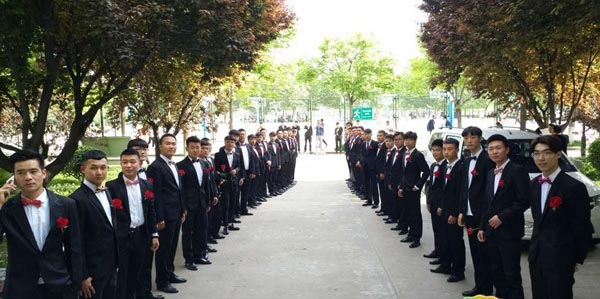 近日,西安航空职业技术学院“婚礼”毕业照引发网友关注。据了解,这组拍“婚礼”毕业照的班级是该校航空维修工程学院飞机机电设备维修专业2016级3班。为了给班里唯一的女生和所有的同学留一份美好的大学回忆,班长韩小康和男生经过三天时间的策划和准备,完成了这组“别具特色”的毕业照。
