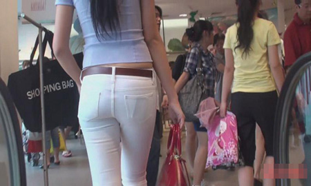 白色紧身裤翘臀美女