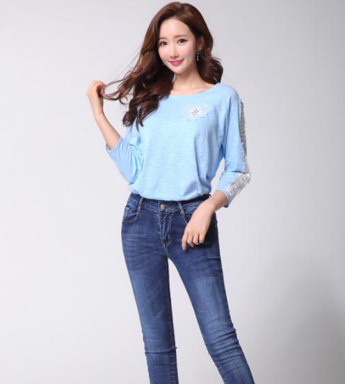 牛仔裤一定要突出女人腰部的特点,要部宽,大腿至小腿要从粗到细。