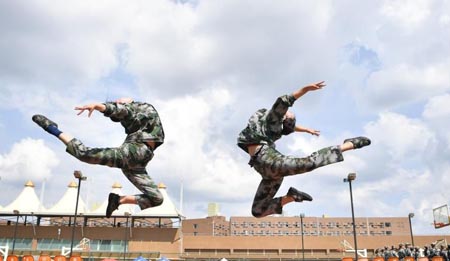 云艺美女一字马军训场上亮绝活,现场秀起一字马