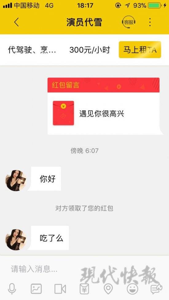 随后,现代快报记者致电租人APP的人工客服,客服人员称,平台坚决杜绝色情服务,一般出租人遇到这种非法要求也不会接受,会立马举报,平台就会对相关用户进行永久封号。虽然如此,平台对线下的交易根本无法监管。