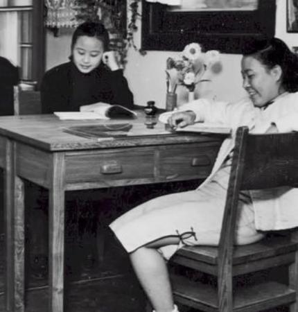 燕京大学女生在宿舍里学习。通过照片我们可以看到,这所大学宿舍的条件非常优越,每一间宿舍也很宽敞。