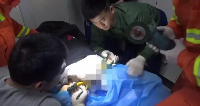 不过,消防人员迅速与医生制定好救援方案后,并立即展开救援:消防员先用手锯将铁环外层锯开,再换磨具将滚珠取出;最后,消防员再用手锯将铁环的最后一层割开。