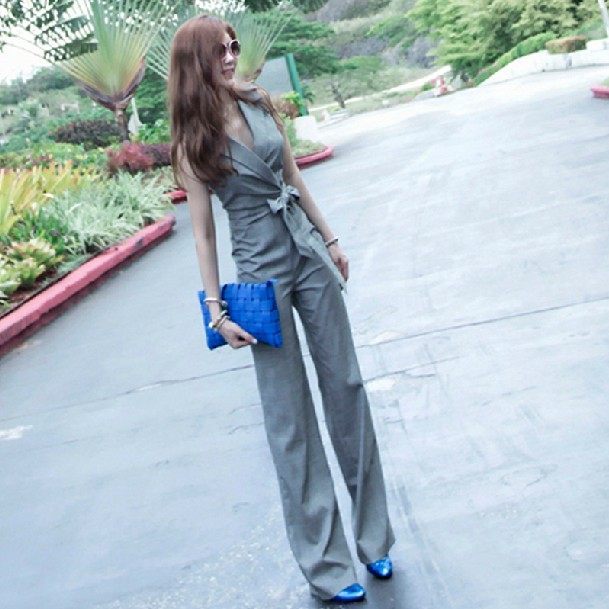 连体裤图片三、酷热的夏天就得来一条新鲜的衣服。这款连体裤,选用雪纺面料,舒适又有坠感,清雅的色彩,带来一股凉爽的气味,冲淡了酷热,柔和了性格。