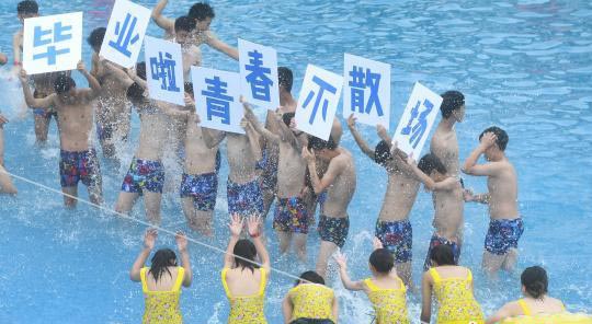 重庆高温天气,中考毕业生水中拍摄个性毕业照