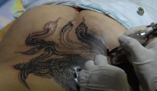 实拍少女痛苦纹身全过程