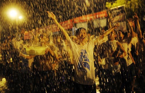 泼水狂欢武汉高校千人湿身庆毕业