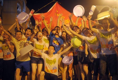 泼水狂欢武汉高校千人湿身庆毕业