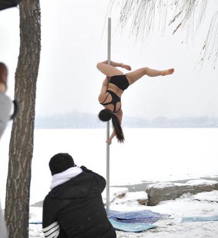 中国钢管舞国家队队员公园内绣技艺