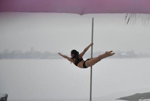 中国钢管舞国家队队员公园内绣技艺