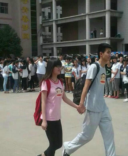 高三情侣告别地下情,高调步出考场