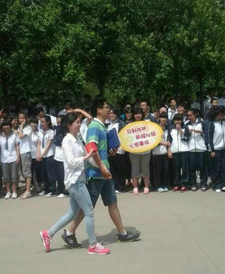 高三情侣告别地下情,高调步出考场
