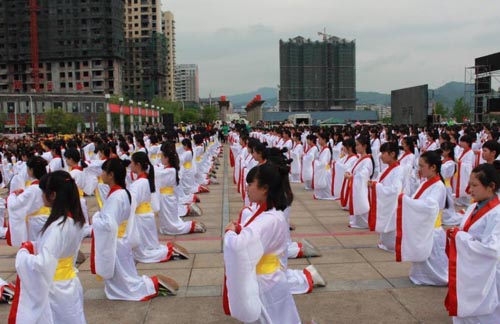 湖南千名少女穿汉服参加成人礼,体验成人大典