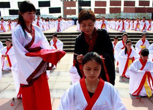 湖南千名少女穿汉服参加成人礼,体验成人大典