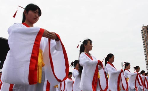 湖南千名少女穿汉服参加成人礼,体验成人大典