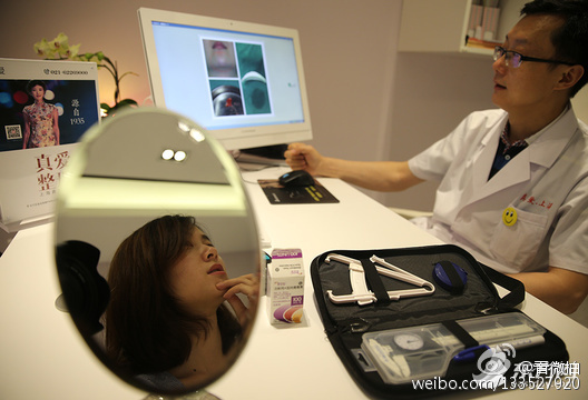图为在整形医院的诊室内,医生向Sandy介绍整形可能带来的风险。医生的电脑上,展示着因为假体植入不当或者使用了劣质材料而造成的整形失败案例。对于整容可能产生的不良后果,Sandy其实心里很清楚。但是,为了追求美丽,她仍然选择了接受整形。