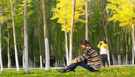 兰州高校“网红银杏林”金色浸染引游人驻足