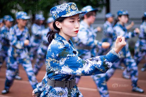 南京艺术学院新生军训萌妹子迷彩服展现靓丽青春