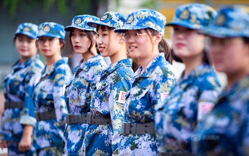 南京艺术学院新生军训萌妹子迷彩服展现靓丽青春