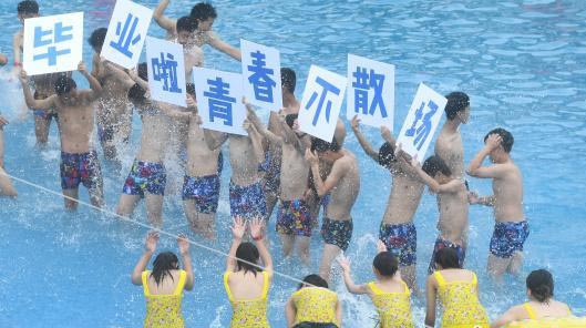 重庆高温天气中考毕业生水中拍摄个性毕业照
