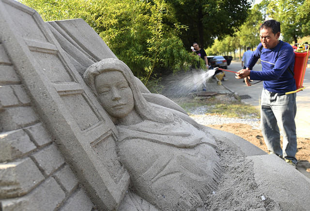 史轩(化名)是名沙雕师,为了给在该校读研的野子(化名)一个难忘的求爱告白,他邀来5名沙雕同行,从工地运来一卡车沙,经过两天夜以继日的精雕细刻,于21日下午完成了这件作品。