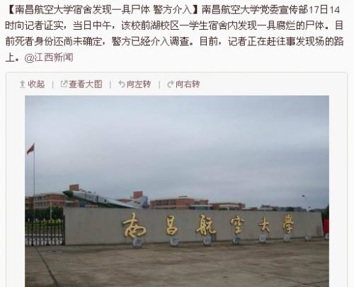 4月17日,南昌航空大学宿舍发现一具腐烂尸体