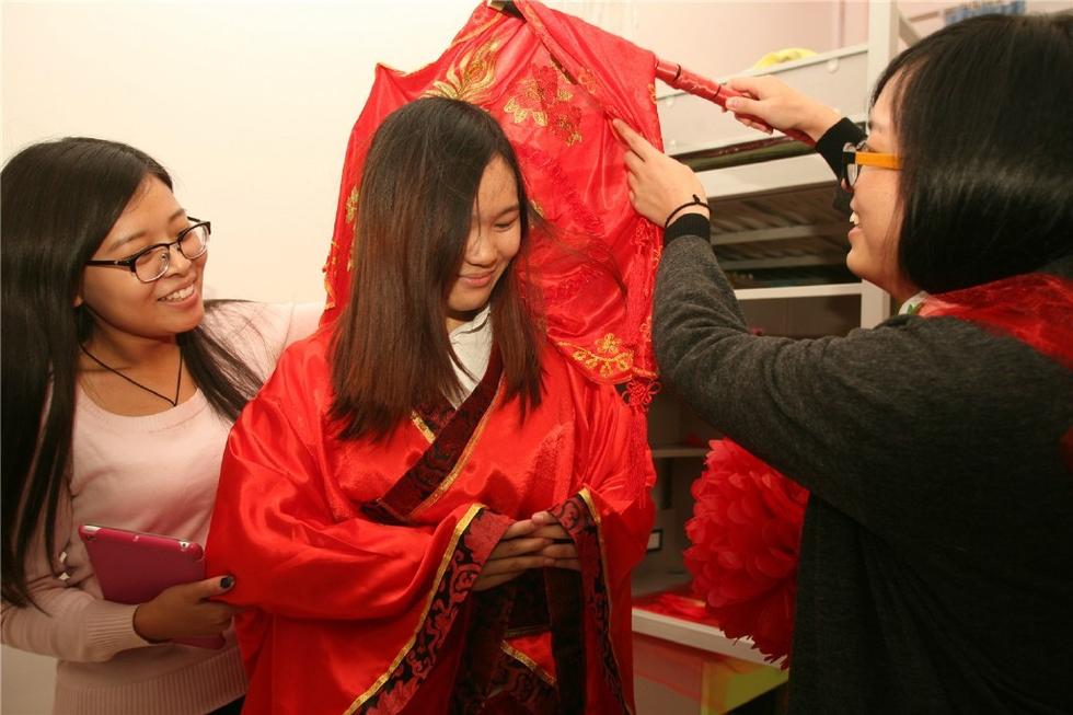 几位女孩还现场演绎了一次简化版“婚礼”。