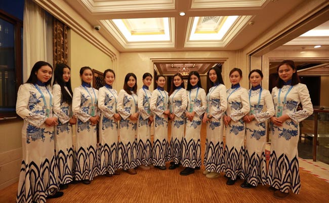 美女大学生穿青花瓷旗袍亮相互联网大会