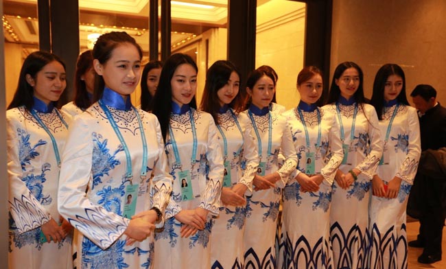 美女大学生穿青花瓷旗袍亮相互联网大会