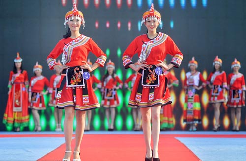 图为刘璐身着苗族服装在半决赛舞台上走秀。