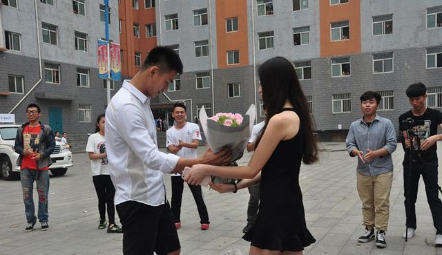 这位男生展示自己的舞技,舞蹈至半,该男生径直走到一名漂亮女生面前牵起她的手,开始求爱表白。
