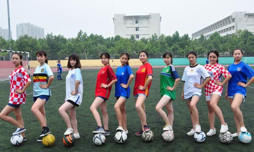 女大学生助力欧洲杯 穿球衣青春靓丽